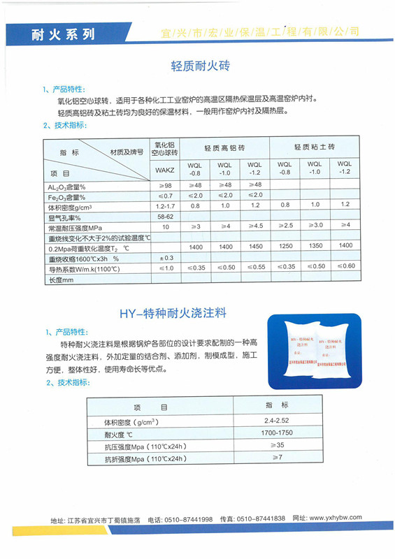 輕質(zhì)耐火磚、HY-特種耐火澆注料