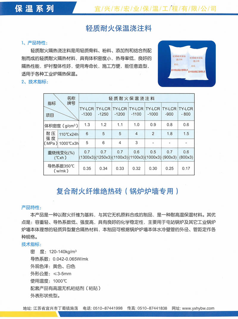 輕質(zhì)耐火保溫澆注料、復(fù)合耐火纖維絕熱磚(鍋爐爐墻專用)